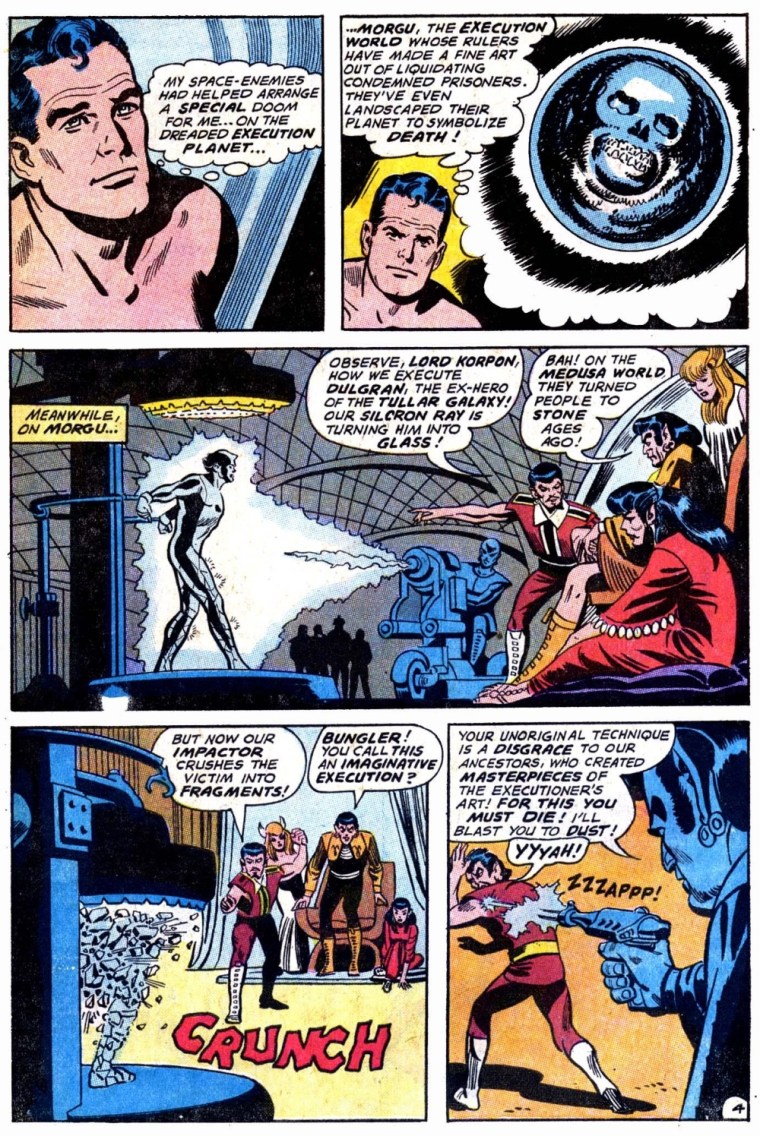 On the world Morgru an underling shows off turning victims into glass in Superman V1 #229.