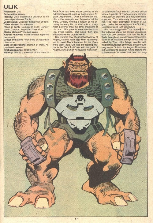 Ulik (Marvel) is in the Official Handbook of the Marvel Universe V2 #13.