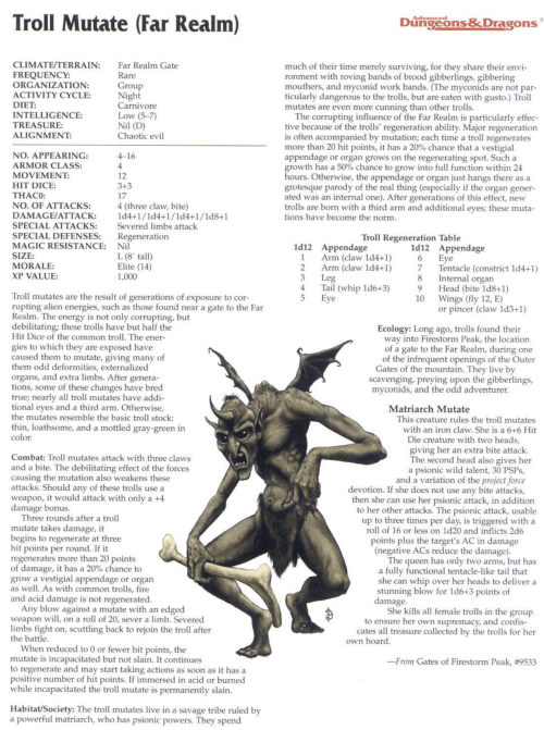 Troll Mutate – TSR 2173 Monstrous Compendium Annual Volume 4