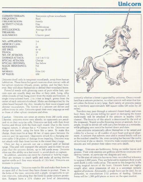 Black Unicorn – TSR 2166 Monstrous Compendium Annual Volume 3