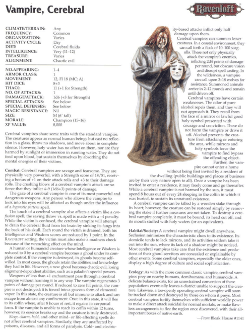 Cerebral Vampires – TSR 2173 Monstrous Compendium Annual Volume 4