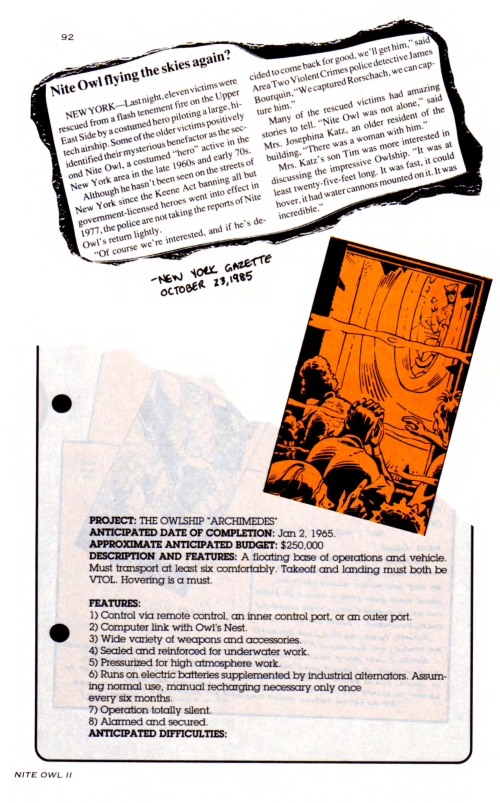 Nite Owl – Owlship – MF254 Watchmen Sourcebook