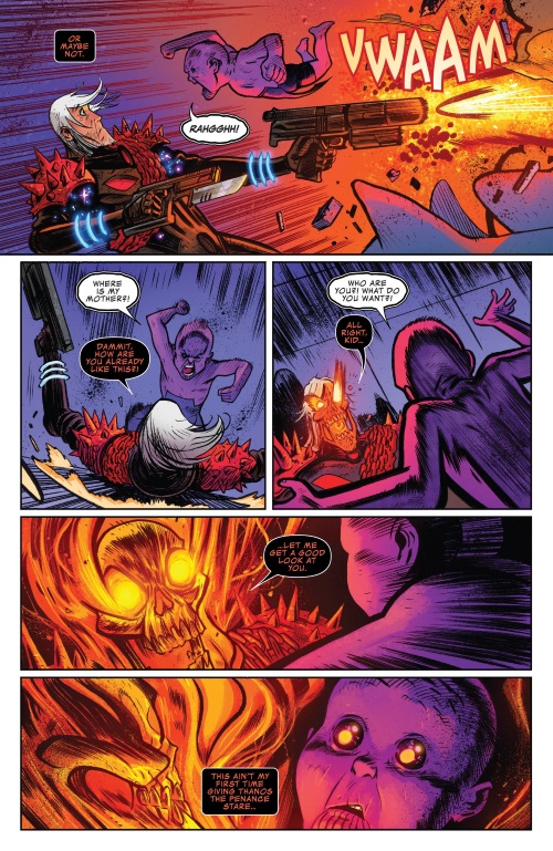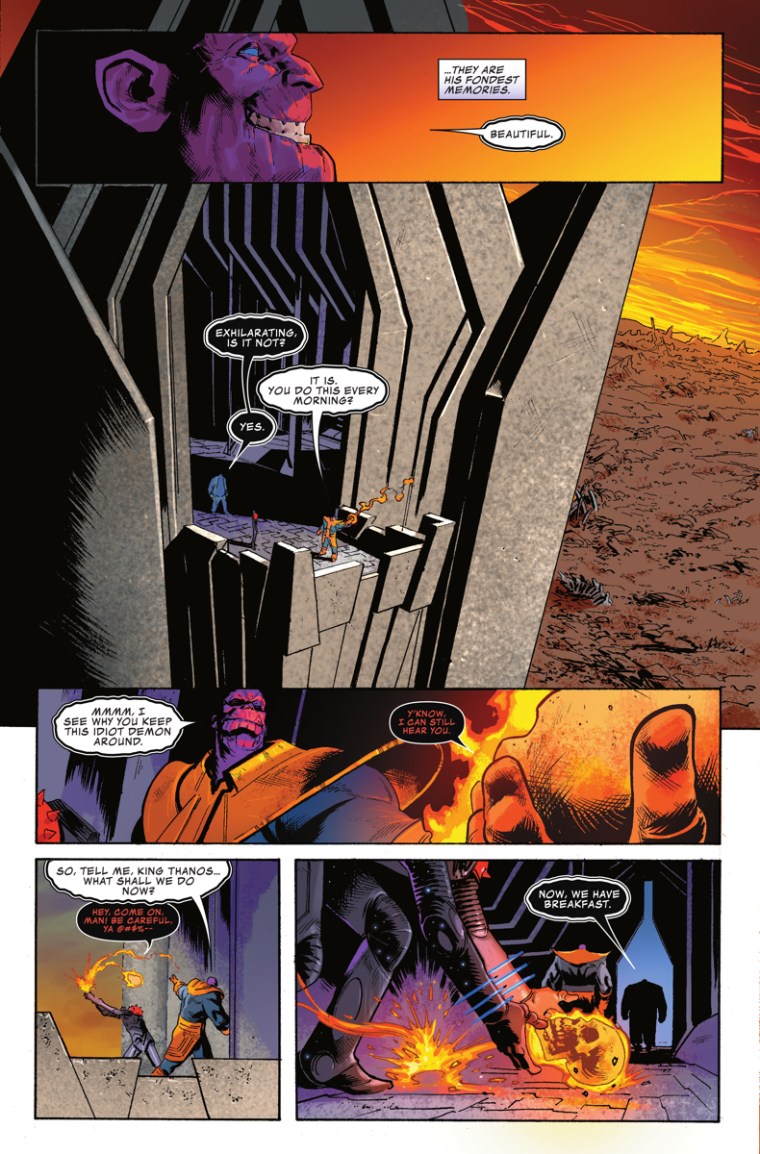 Thanos (Marvel) uses the penance stare to relive his sins with glee in Thanos #15.