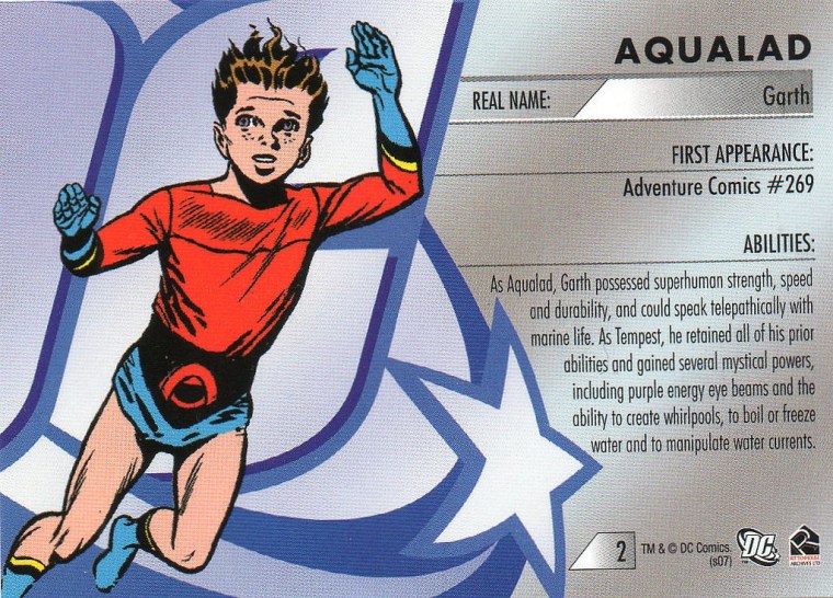 Aquaman (DC) does not have the ability to manipulate water like his wife Mera. In the Silver Age, Aqualad (DC) more or less had the same powers as Aquaman. Later Aqualad became Tempest (DC) and could manipulate water.