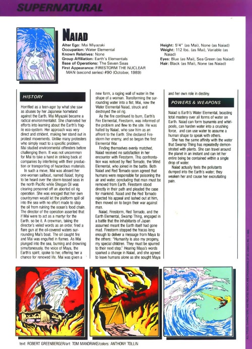 Naiad (DC) is a water elemental (Who’s Who in the DC Universe #2).