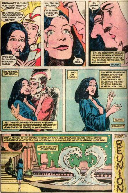 Adam Strange (DC) uses a water “pet” to kill a warrior of Thanagar in Swamp Thing #58.