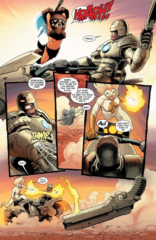 Boss Cage (Marvel) who resembles Judge Dredd can shoot webs from his gloves in Dark Avengers #178.