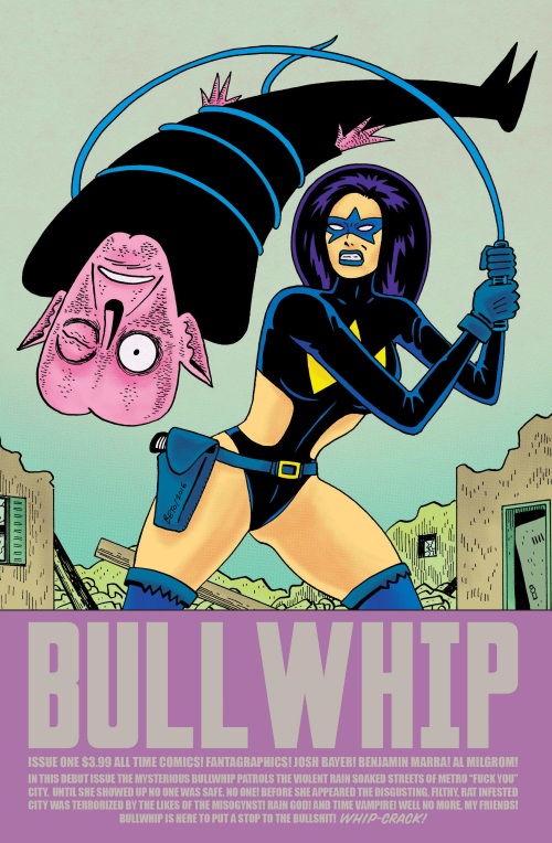 Bullwhip (Fantagraphics) likes to use a bullwhip to fight The Misogynist, Raingod and the Time Vampire. (All Time Comics: Bullwhip #1).