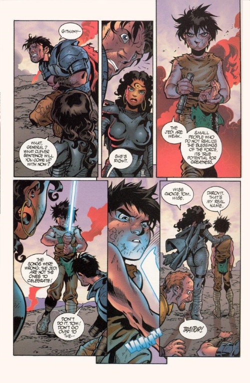 Githany uses a lightwhip in Star Wars – Jedi vs. Sith #4 (Dark Horse).