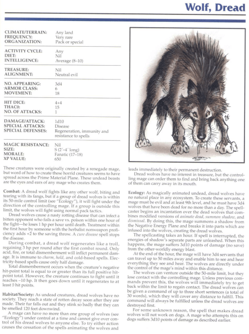 Dread Wolf – TSR 2145 Monstrous Compendium Annual Volume 1