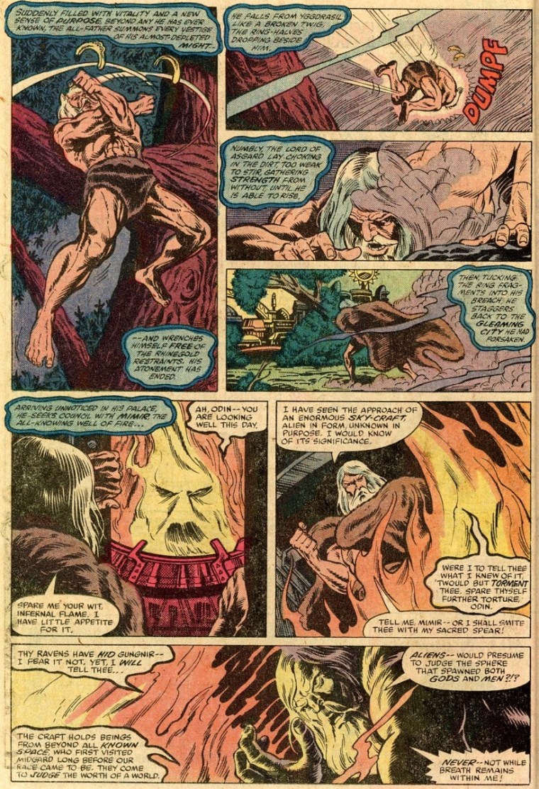Odin (Marvel) does not commune with Yggdrasill directly but with Mimir at the Well of Mimir at the base of Yggdrasill and sacrifices his eye after being bound to Yggdrasill in order to gain wisdom (Thor V1 #274).