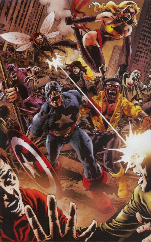Marvel Zombies are have led to several miniseries. Despite the name, the Marvel zombies are more revenants than zombies. However, the Marvel Zombies do eat the living unlike the DC counterparts and their zombie eating habits are done for laughs very effectively. Much better than the DC version, Black Lantern Corps.