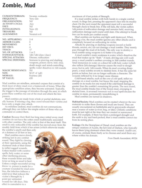 Mud Zombie – TSR 2173 Monstrous Compendium Annual Volume 4
