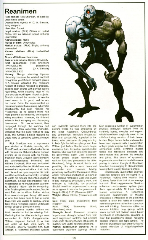 Reanimen are corpses turned into robots in Official Handbook of the Invincible Universe #2.