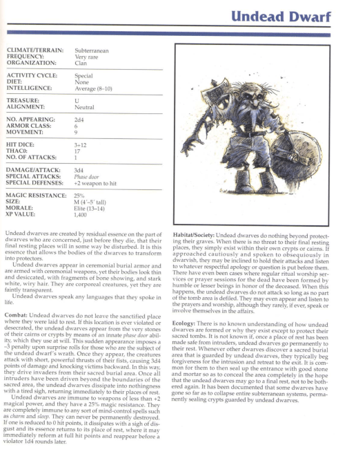 Undead Dwarf – TSR 2145 Monstrous Compendium Annual Volume 1