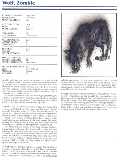 Zombie Wolf – TSR 2145 Monstrous Compendium Annual Volume 1