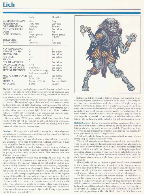Psionic Lich – TSR 2145 Monstrous Compendium Annual Volume 1