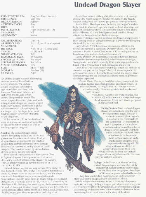 Undead Dragon Slayer – TSR 2166 Monstrous Compendium Annual Volume 3